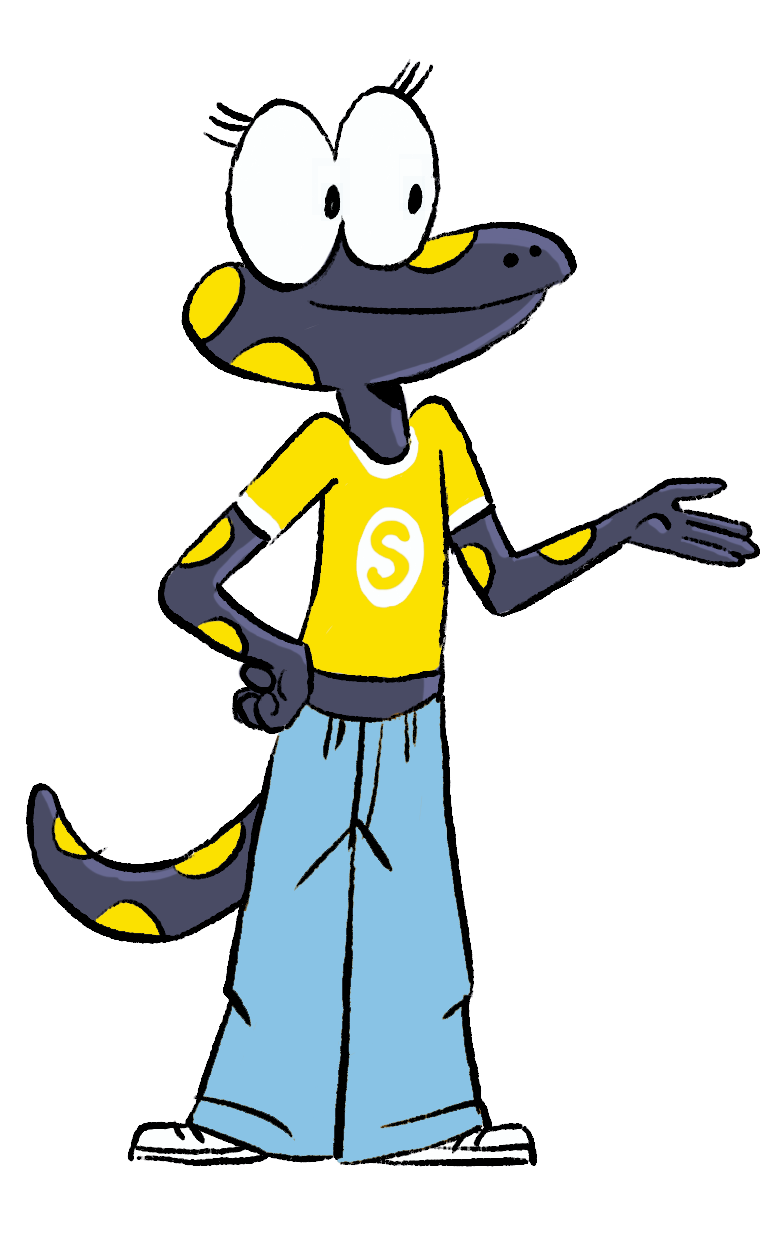 Vive, très (trop) enthousiaste et écolo, c’est l’exploratrice de la bande. Avec son petit sac (jumelles, lampe torche… ), la salamandre est toujours prête pour l’aventure !